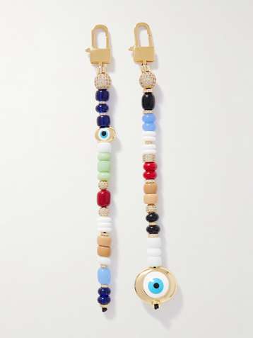 Protection set of two gold-plated, glass, enamel and crystal bag charms