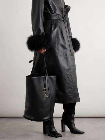 Extra Large Drawstring leather-trimmed suede bucket bag