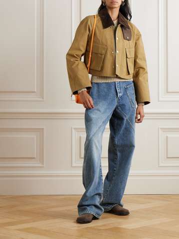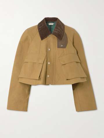 Cropped corduroy-trimmed waxed-cotton jacket