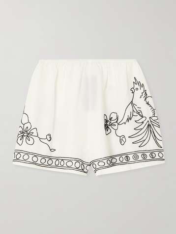 Cockatoo Tap bead-embellished cotton and silk-blend shorts