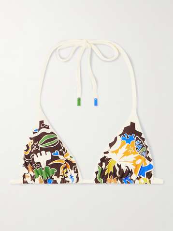 Kiwi Cordillera ruffled floral-print stretch recycled bikini top