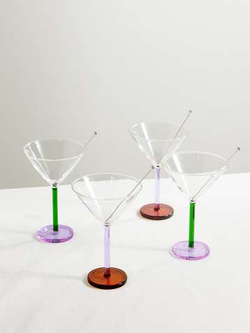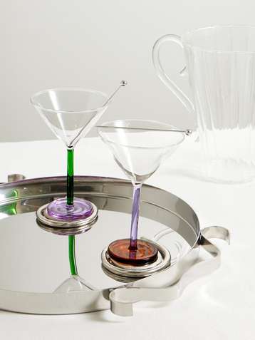 Piano set of two cocktail glasses and stainless steel skewers