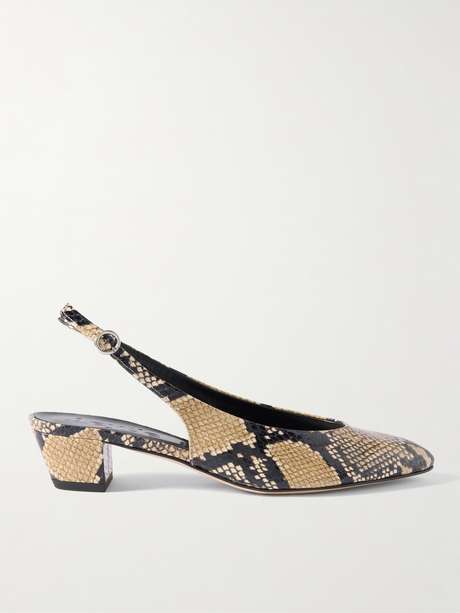 Aeyde's 'Celeste' pumps are made from leather that's embossed and printed to resemble snakeskin. Detailed with buckled slingback straps, they have elegant round toes and rest on block heels that offer comfortable lift. Wear yours with everything from jeans to tailoring.