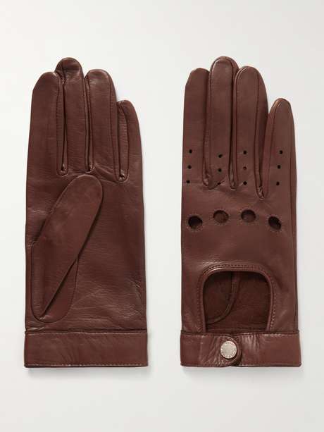 Agnelle's 'Rose' gloves are inspired by traditional driving styles. They're made from buttery-soft leather with cutouts and perforations. The cuffs fasten with engraved gold-tone snaps for a precise fit.