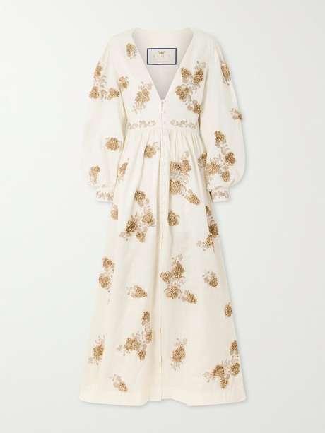 Agua by Agua Bendita's 'Frambuesa' dress is cut from breathable cotton delicately hand-embroidered with flowers – a process which takes 38 hours to complete. It's the perfect piece for warm summer evenings or special occasions when you want to wear something truly unique.