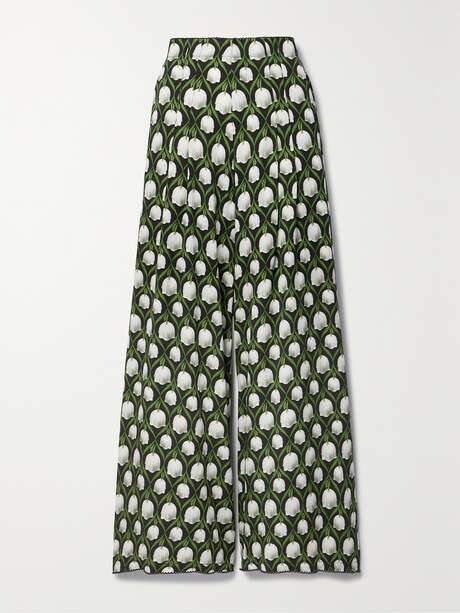 AGUA BY AGUA BENDITA + NET SUSTAIN Piñon pleated floral-print recycled-twill wide-leg pants