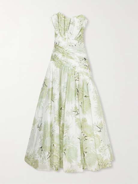 Aje reimagines florals through sculptural draping. Crafted from organza with a hint of linen, it has contrasting ruching through the bodice and waist. Wear yours with chunky earrings.
