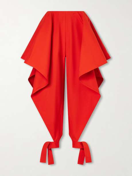 ALAÏA Paneled ruffled cotton-gabardine wide-leg pants