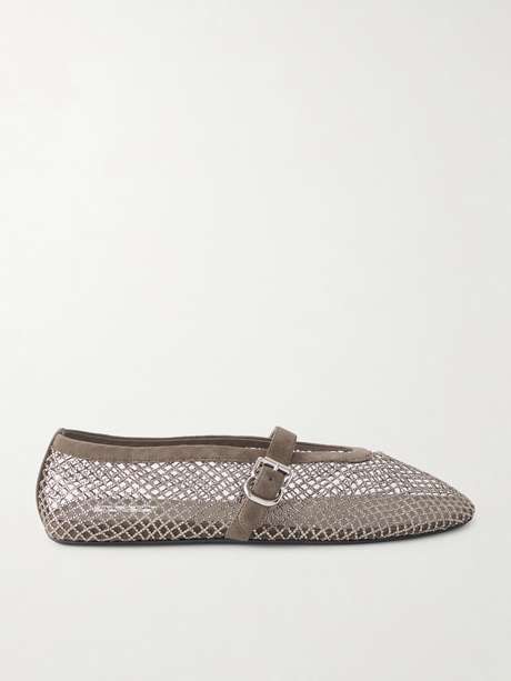 ALAÏA Crystal-embellished suede-trimmed mesh ballet flats