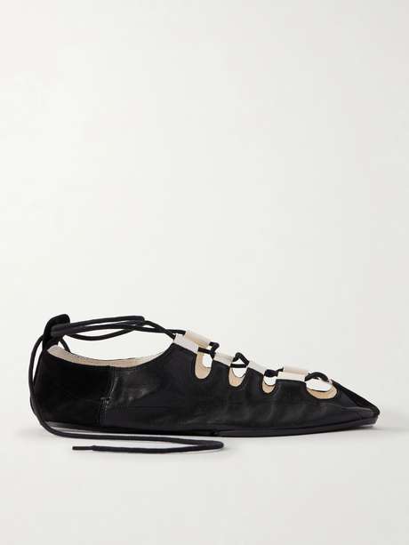 ALAÏA Suede-trimmed leather ballet flats