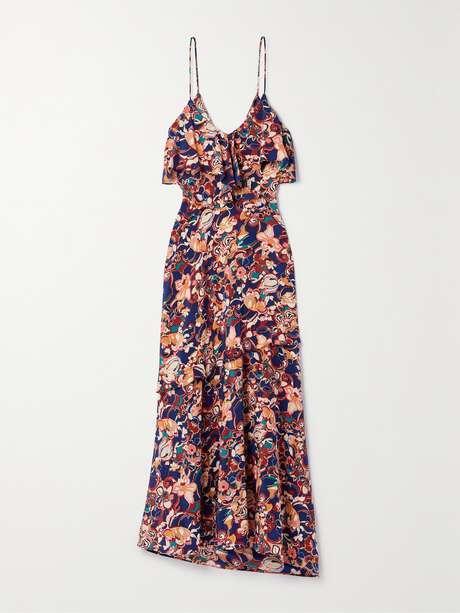 The beautiful print decorating A.L.C.'s 'Penelope' dress warrants a closer look, so you can fully appreciate all the colors and flowers throughout. It's made from silk-blend crepe de chine and has slender straps and flouncy ruffled overlays that drape from the neckline. Wear yours with lace-up sandals.