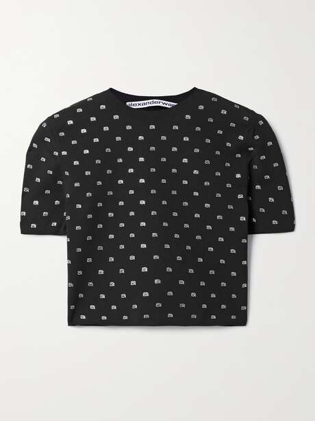 ALEXANDER WANG Cropped crystal-embellished stretch-jersey T-shirt