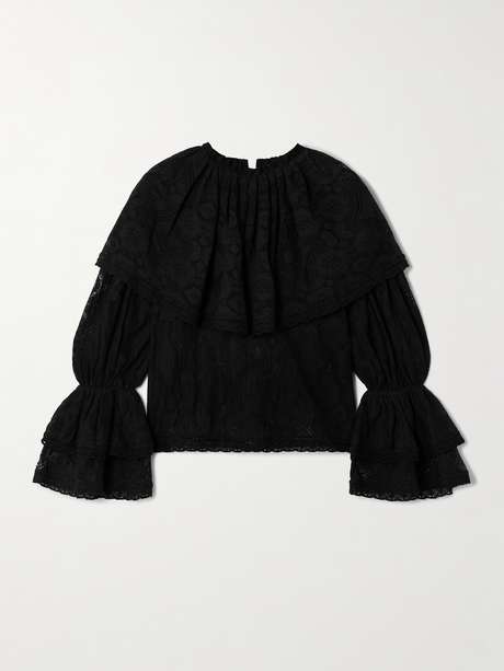 Alix of Bohemia's 'Eloise' blouse has an undeniably romantic feel. Made from sheer cotton-lace, it has a ruffled collar and elasticated cuffs. Underpin yours with a tonal camisole or bralette for more coverage.
