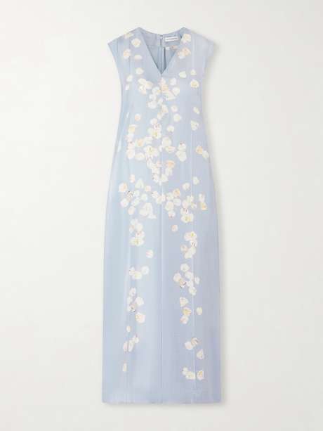 Altuzarra's 'Cherie' dress embodies effortless femininity. Made from lustrous silk-twill printed with delicate 'Storm Petals', it has a relaxed V-neckline and a fluid silhouette that drapes elegantly over the body. The soft pastels will look gorgeous with white gold jewelry.