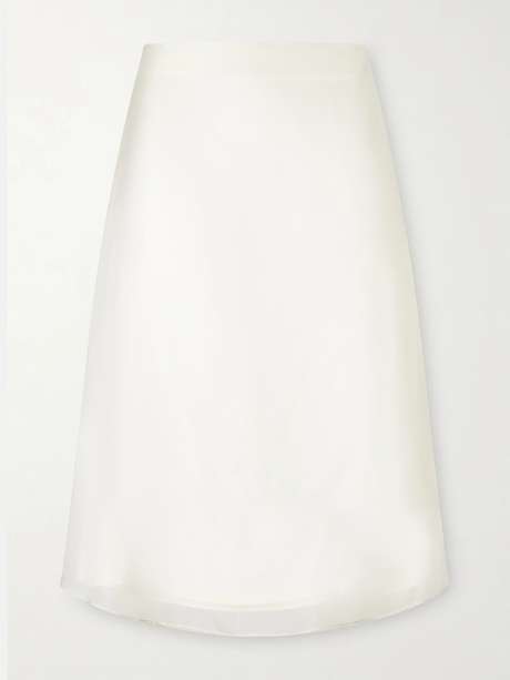 A study in quiet volume, Ami Paris shapes this corolla skirt in fluid silk crepe that moves with subtle intention. The mid-rise fit and barely-there structure let the silhouette unfold naturally, holding its form without ever feeling fixed,