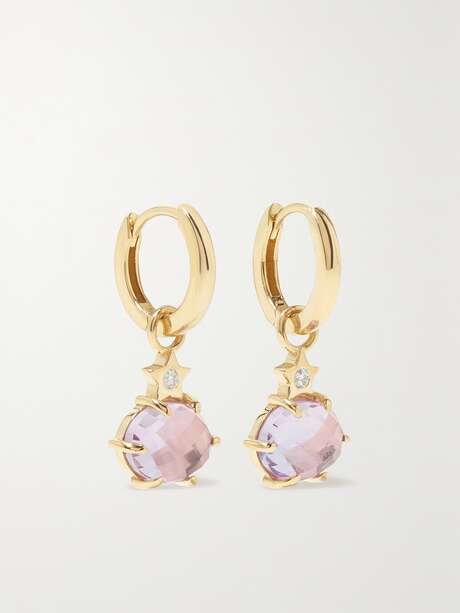 ANDREA FOHRMAN Mini Cosmo 14-karat gold, rose de France and diamond hoop earrings