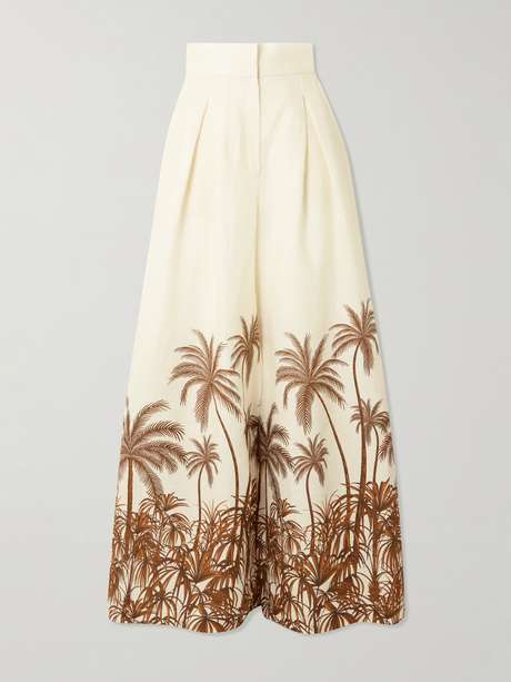 Andres Otalora's 'Desperte' pants are inspired by Caribbean landscapes. They're tailored from certified linen, printed with a palm tree-lined scene and offer plenty of room through the legs. Tuck in a camisole or the matching 'Si Sabes' shirt into the high-waist.