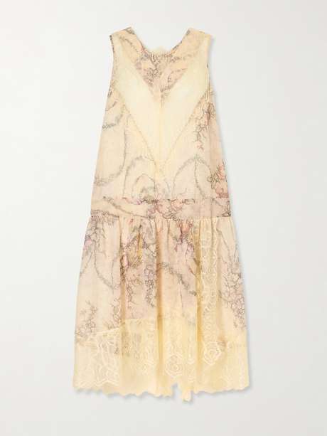 Anna Sui’s love of bohemian femininity comes through in fluid silhouettes and intricate details. This midi dress is cut from airy chiffon printed with florals and finished with lace trims that add texture and a softly romantic feel.