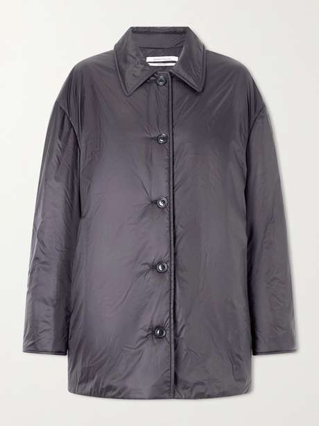 Perfect for walking the dog or strolls through the countryside, Another Tomorrow's 'Balmacaan' coat is made from recycled shell and has a relaxed fit. Lightly padded for warmth, it fastens with corozo nut buttons and has practical side pockets.