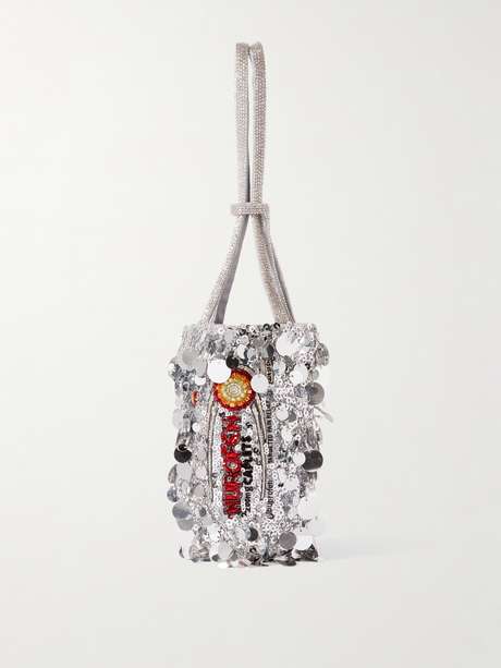 True to Anya Hindmarch’s style, the 'Nurofen' bag turns something ordinary into wearable art. Made from silver satin, it is completely covered in beads and sequins to depict the household essential. The straps can be worn around the arm for a hands-free look.