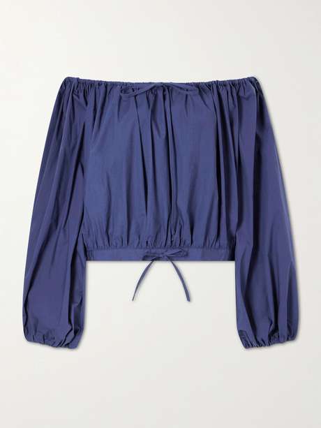 BERNADETTE Ally off-the-shoulder cropped cotton-blend blouse