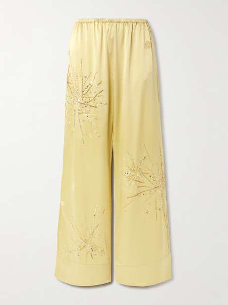 BERNADETTE says its 'Louis' pajama pants are designed to be worn "on every occasion of the day" and we agree that they definitely shouldn't be reserved for bedtime. They're cut from fluid silk-blend satin in a wide-leg fit and decorated with embroidery and sequins to form pretty fireworks throughout. Wear yours to garden parties or on nights in with friends.