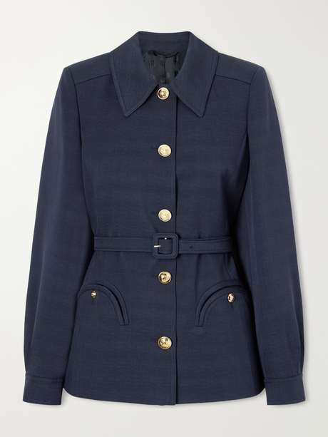 BLAZÉ Milano's 'Genesis Paint' jacket reflects the label’s refined approach to tailoring. Crafted from textured fabric, it cinches at the waist with a matching belt, while gold-tone buttons and the signature curved ‘smiley’ pockets complete the design.