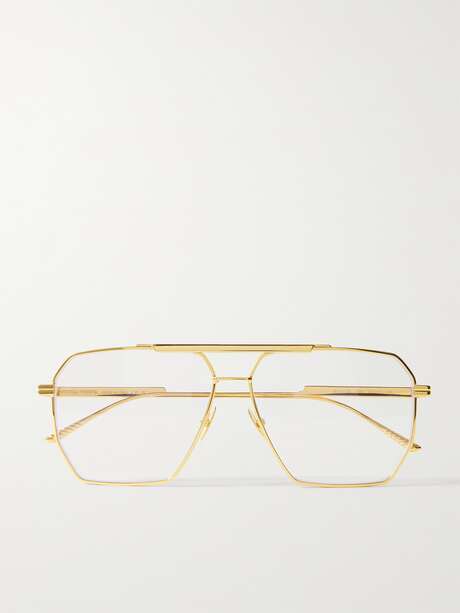 Bottega Veneta Eyewear puts a geometric spin on classic aviator-style glasses - this pair is designed with hexagonal optical lenses that can be switched out for your prescription. They're made from gold-tone metal and have adjustable nose pads so they'll stay comfortably in place all day.