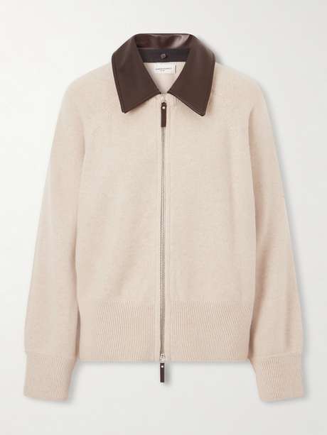Brandon Maxwell's slouchy 'Conrad' jacket takes cues from classic bomber styles, elevated through an unexpected choice of materials. Knitted from recycled cashmere in an 'Oatmeal Brown' hue, it's finished with a detachable leather collar and a sleek two-way zip.