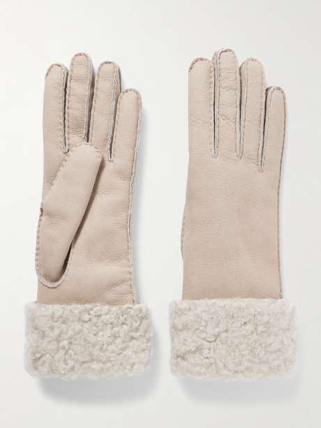 EXCLUSIVE AT NET-A-PORTER. Brunello Cucinelli's gloves embody effortless sophistication. They've been made in Italy from soft shearling and have contrasting cuffs for indulgent texture. They'll be the perfect finishing touch to every cold-weather look.