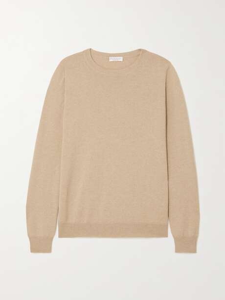 Brunello Cucinelli's sweater is the kind you can keep forever because the beige color is timeless and the cashmere, if cared for, will still feel soft years from now. We recommend gently hand washing yours and drying it flat to preserve the close-fitting shape.