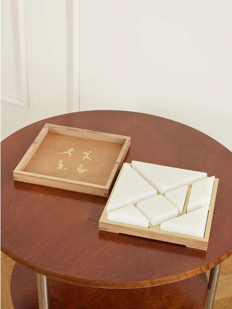 Brunello Cucinelli brings Italian craftsmanship to Tangram, a Chinese dissection puzzle. Made in Italy from walnut, it's finished with brass and has white onyx playing pieces. Store it in its leather box.