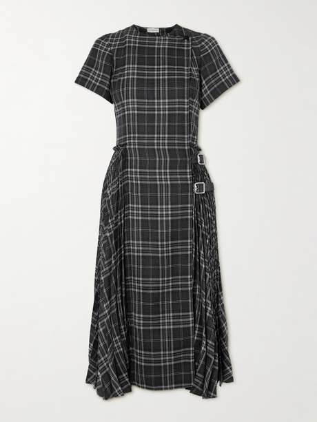 From its pleated skirt to the tartan-style check, Burberry's dress takes cues from traditional kilts. It's woven with plenty of wool for a soft feel and has a wrap-style front with buckled leather tabs.