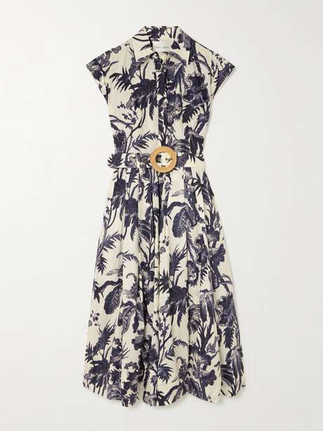 CARA CARA Octavia belted pleated floral-print cotton-poplin midi shirt dress