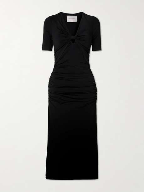 Carolina Herrera’s dresses are synonymous with refined elegance. Cut from smooth jersey, it's gathered at the cutout V-neckline and ruched through the waist and hips to enhance the silhouette. The versatile midi length works well with pumps.