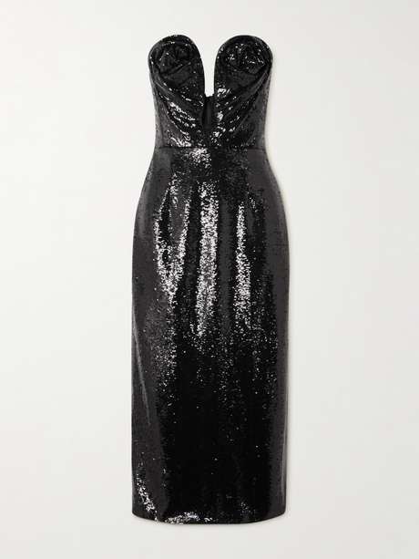 CAROLINA HERRERA Strapless sequined tulle midi dress
