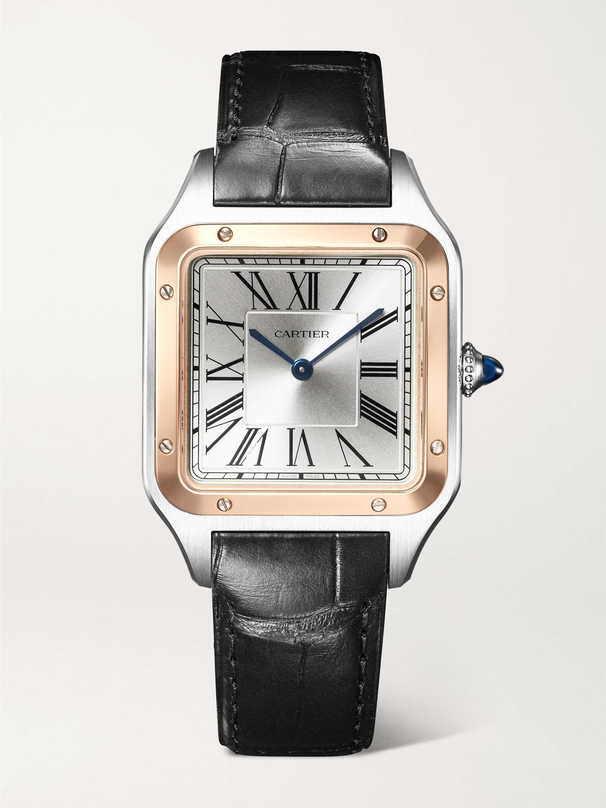 CARTIER Santos-Dumont large 43.5mm stainless steel, 18-karat rose gold and alligator watch