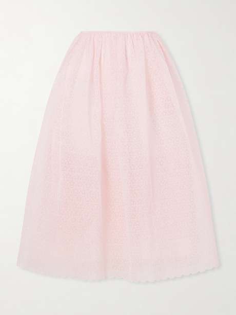 Cut from blush pink cotton-blend, the 'Bala' skirt by Cecilie Bahnsen lets the intricate floral pattern take focus. The elongated silhouette offers a clean canvas, allowing the raised texture and scattered blooms to stand out with quiet depth.