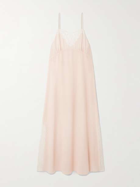 EXCLUSIVE AT NET-A-PORTER. There's a bohemian romance to Chloé's maxi dress. Made from silk crepe de chine, it's paneled with delicate lace to reveal glimpses of skin and has a floaty empire shape. We like it styled with layered chains.