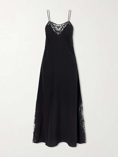 Chloé's dress is inspired by beautiful lingerie. Bias-cut from silk crepe de chine, it's adorned with romantic lace and has a streamlined, body-skimming shape. It's held by pin-thin straps that show off your décolletage.