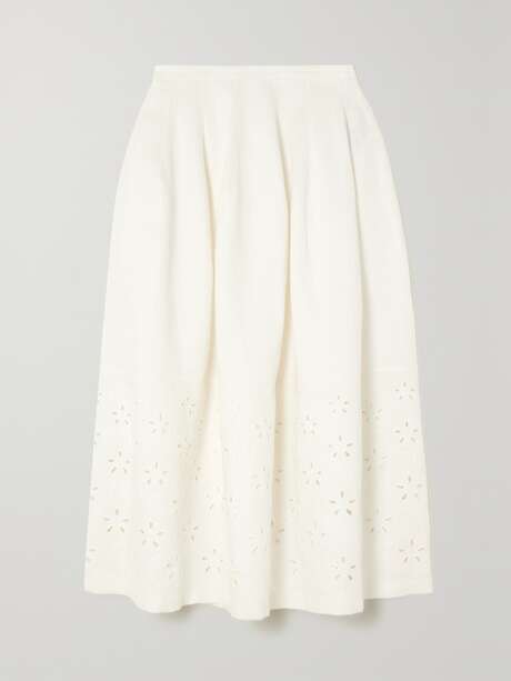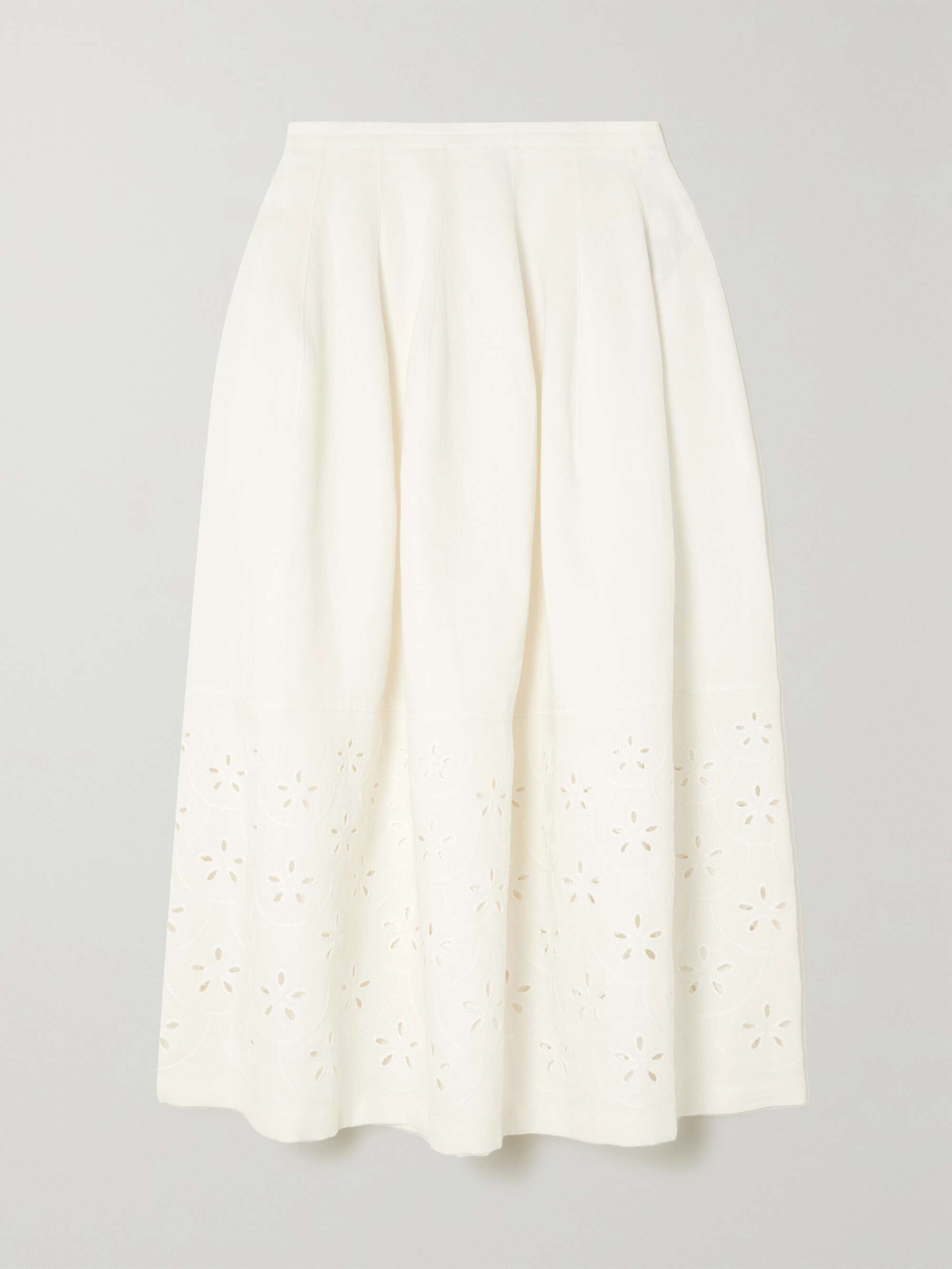 CHLOÉ Broderie anglaise linen-twill midi skirt
