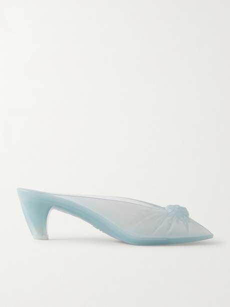 The playfully whimsical character of Chloé's mules feels akin to fairytale moments. They're shaped from transparent TPU, with a knotted design and square peep toes. Low conical heels are comfortable long after the clock strikes twelve.
