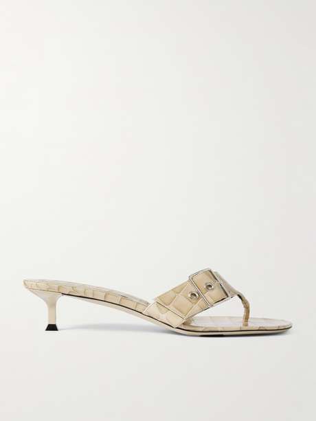 Christen's 'Helix' sandals are made from croc-effect patent-leather in a '90s-inspireds thong design. They're set on fluted 35mm heels and have silver-tone buckles.