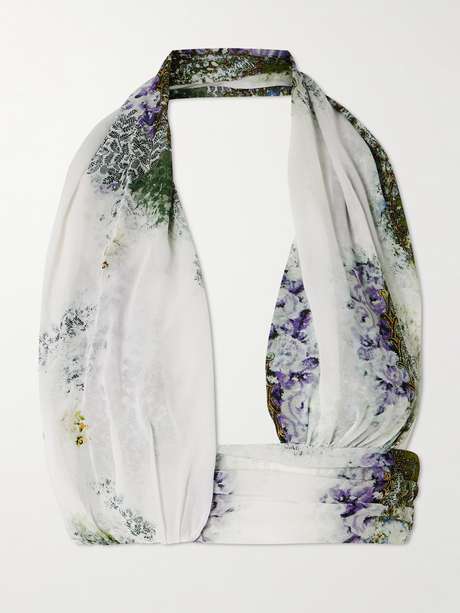 CHRISTOPHER ESBER Absence cropped printed silk-chiffon halterneck top