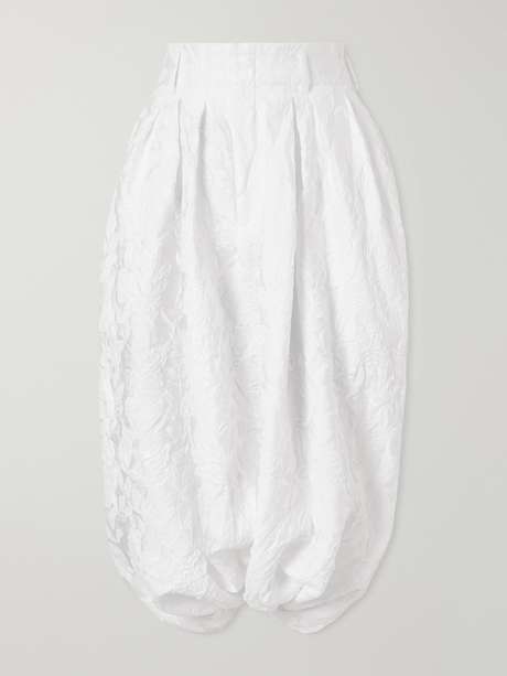 Subverting the natural lines of the body through extravagant silhouettes is what Comme des Garçons is known for. Made from jacquard-knit, these pants have blooms woven throughout and an exaggerated parachute shape. Style them with a statement jacket.