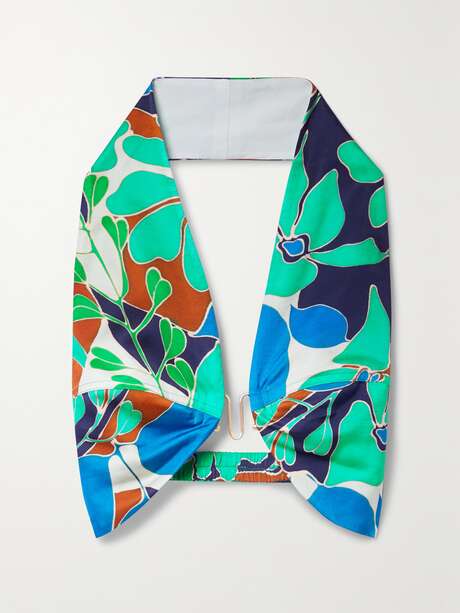CULT GAIA Diem cropped embellished floral-print satin halterneck top