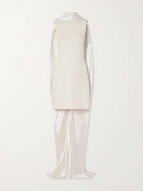 Danielle Frankel's 'Mimi' dress is perfect for brides looking to serve vintage glamour on their big day. Made from a wool-blend, it has a satin scarf-effect panel that wraps around the neck, frames the open back and falls to a floor-skimming train. Wear yours with heels comfortable enough to dance in.
