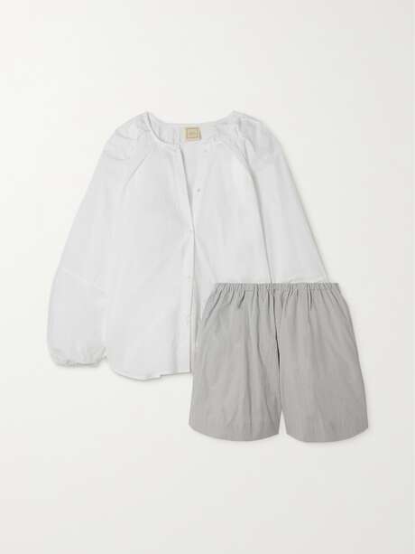 DEIJI STUDIOS + NET SUSTAIN The Release Tuck organic cotton-poplin blouse and shorts set