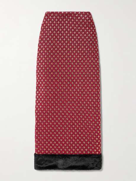 Pencil skirts are having a comeback this fall, and DESTREE's 'Monica' style is such a chic take on the ladylike cut. It's made from glittering, structured jacquard with a plush trim at the calf-grazing hem.