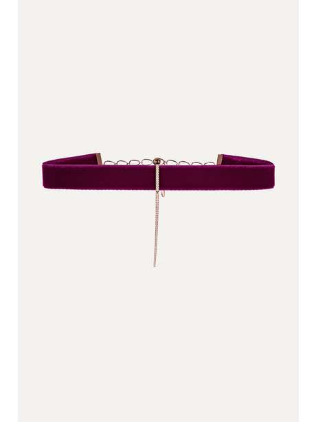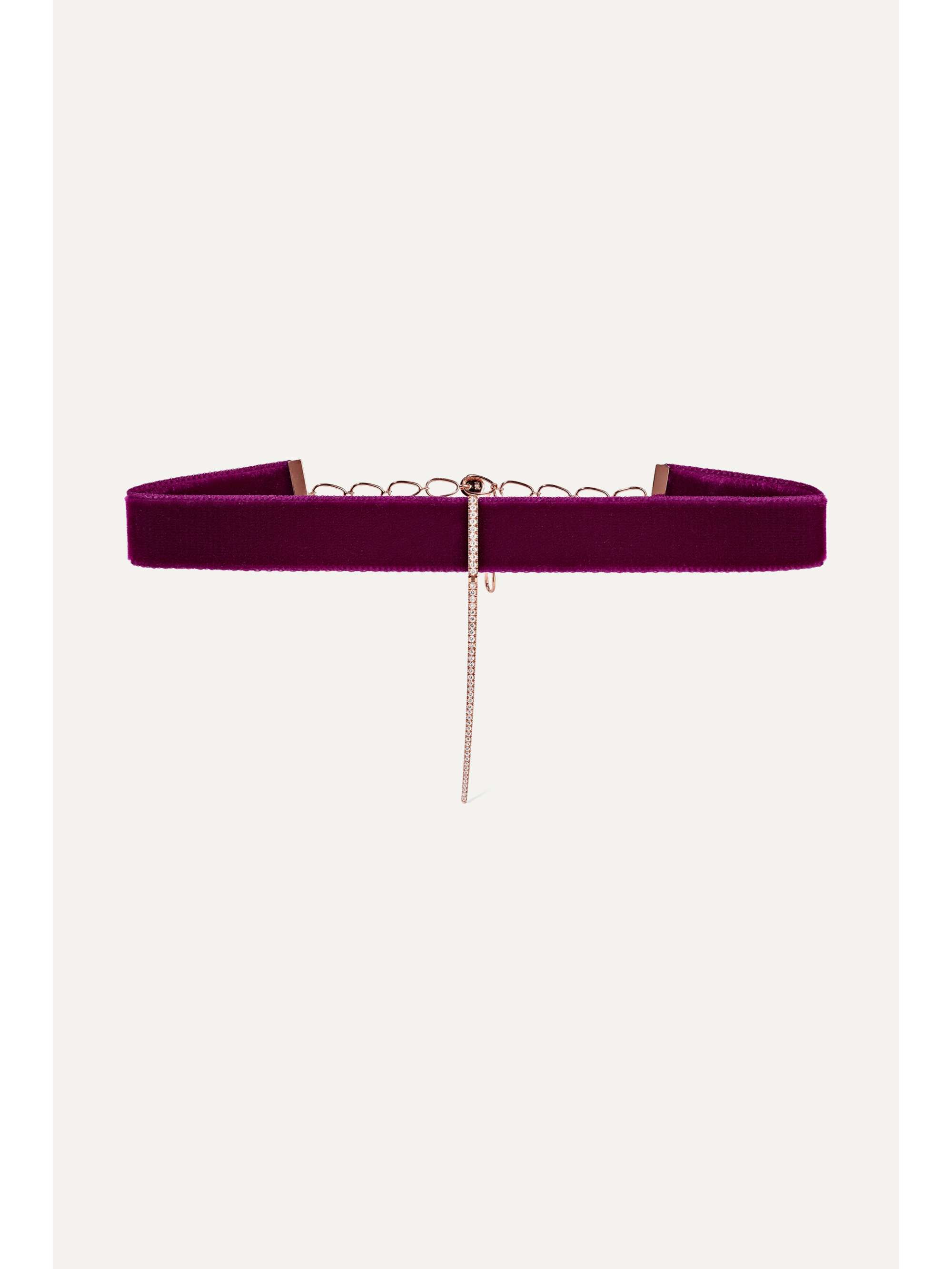 DIANE KORDAS 18-karat rose gold, velvet and diamond choker